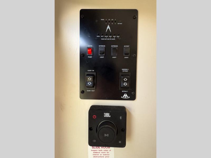 With any Transcend One travel trailer by Grand Design, you will enjoy lightweight towing thanks to their single-axle. There are many interior comforts to make camping easier than ever, such as recessed lighting, residential countertops, and a 6' 6" interior height. Each model is constructed with a heated and enclosed underbelly with suspended tanks, a moisture barrier floor enclosure, and Thermofoil over the roof and front cap for added protection. And a JBL sound system will let you listen to tunes as you visit under the power awning with a Fusion light!