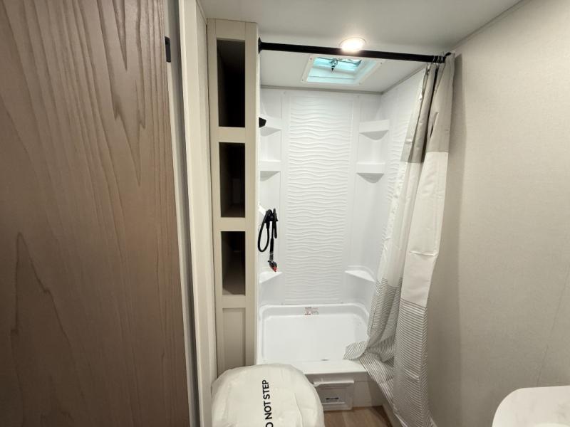 With any Transcend One travel trailer by Grand Design, you will enjoy lightweight towing thanks to their single-axle. There are many interior comforts to make camping easier than ever, such as recessed lighting, residential countertops, and a 6' 6" interior height. Each model is constructed with a heated and enclosed underbelly with suspended tanks, a moisture barrier floor enclosure, and Thermofoil over the roof and front cap for added protection. And a JBL sound system will let you listen to tunes as you visit under the power awning with a Fusion light!