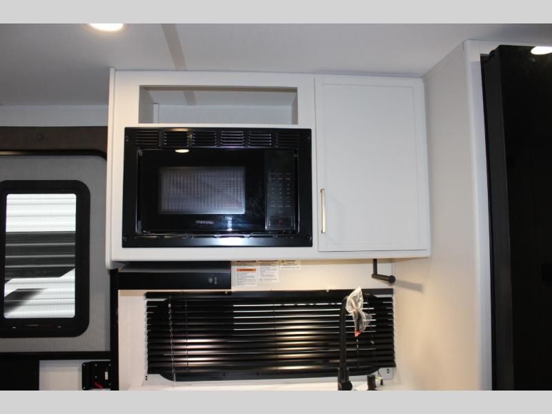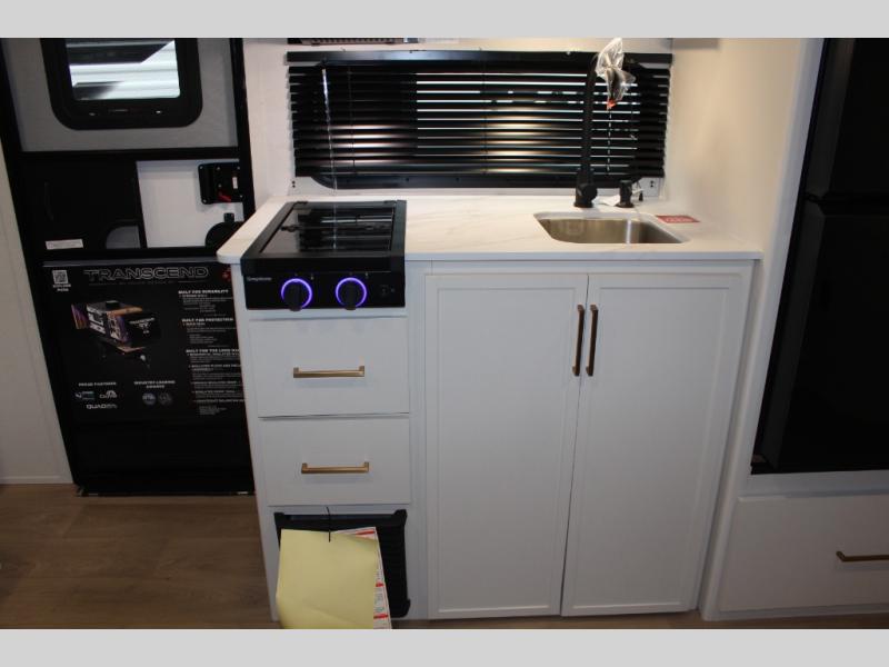 With any Transcend One travel trailer by Grand Design, you will enjoy lightweight towing thanks to their single-axle. There are many interior comforts to make camping easier than ever, such as recessed lighting, residential countertops, and a 6' 6" interior height. Each model is constructed with a heated and enclosed underbelly with suspended tanks, a moisture barrier floor enclosure, and Thermofoil over the roof and front cap for added protection. And a JBL sound system will let you listen to tunes as you visit under the power awning with a Fusion light!