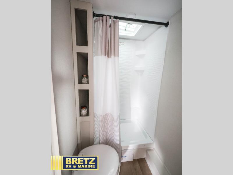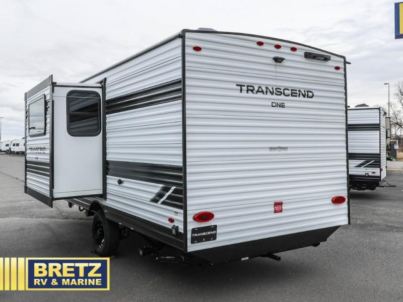 With any Transcend One travel trailer by Grand Design, you will enjoy lightweight towing thanks to their single-axle. There are many interior comforts to make camping easier than ever, such as recessed lighting, residential countertops, and a 6' 6" interior height. Each model is constructed with a heated and enclosed underbelly with suspended tanks, a moisture barrier floor enclosure, and Thermofoil over the roof and front cap for added protection. And a JBL sound system will let you listen to tunes as you visit under the power awning with a Fusion light!