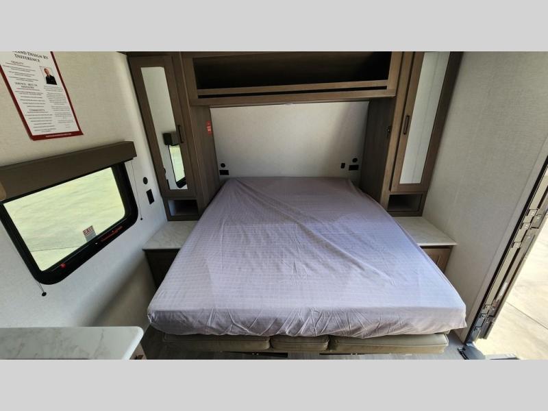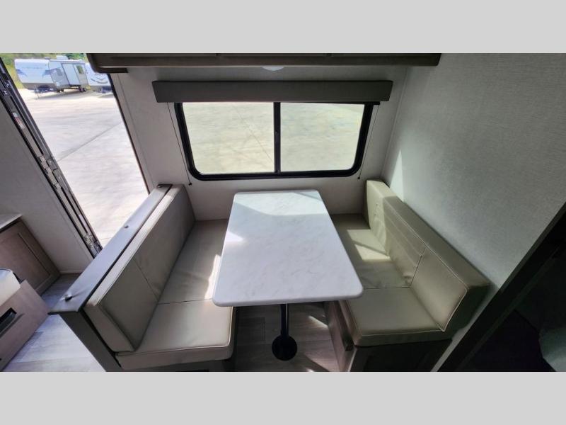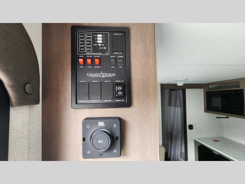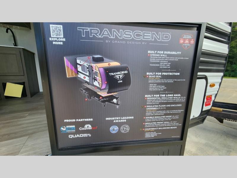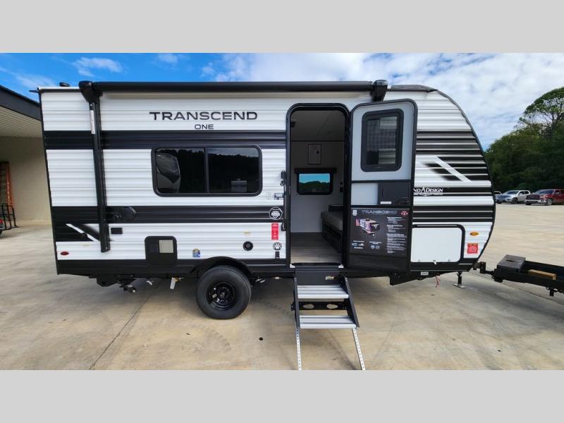 With any Transcend One travel trailer by Grand Design, you will enjoy lightweight towing thanks to their single-axle. There are many interior comforts to make camping easier than ever, such as recessed lighting, residential countertops, and a 6' 6" interior height. Each model is constructed with a heated and enclosed underbelly with suspended tanks, a moisture barrier floor enclosure, and Thermofoil over the roof and front cap for added protection. And a JBL sound system will let you listen to tunes as you visit under the power awning with a Fusion light!