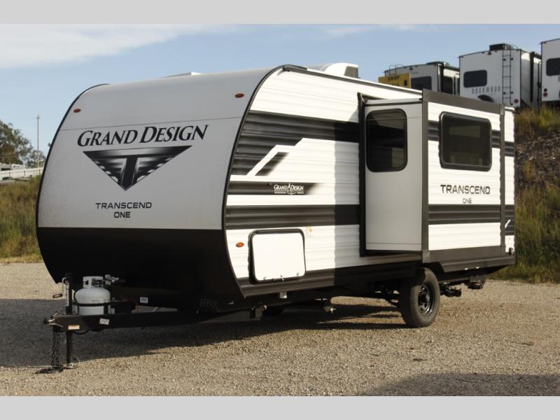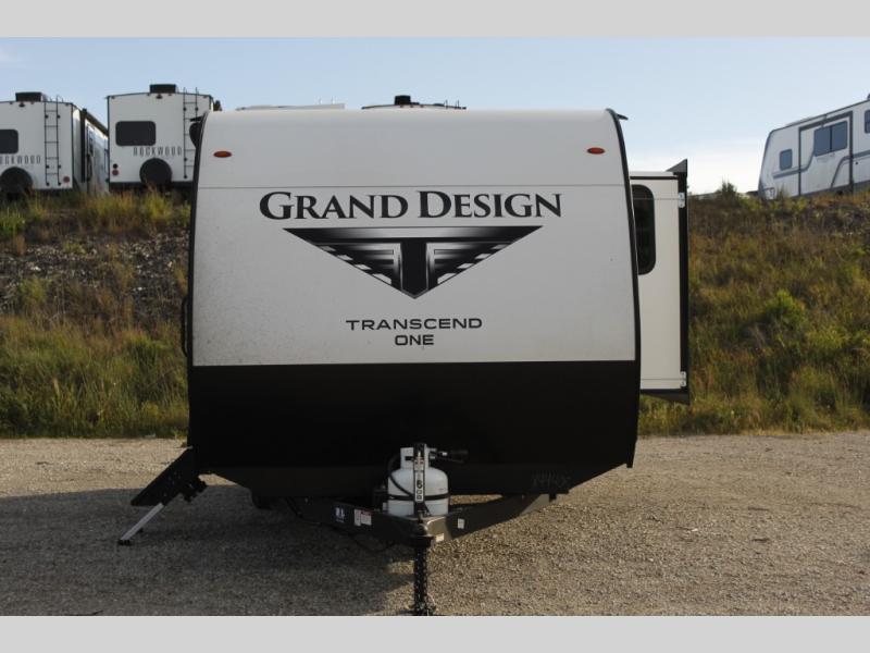 With any Transcend One travel trailer by Grand Design, you will enjoy lightweight towing thanks to their single axle. There are many interior comforts to make camping easier than ever, such as recessed lighting, residential countertops, and a 6' 6" interior height. Each model is constructed with a heated and enclosed underbelly with suspended tanks, a moisture barrier floor enclosure, and Thermofoil over the roof and front cap for added protection. And a JBL sound system will let you listen to tunes as you visit under the power awning with a Fusion light!