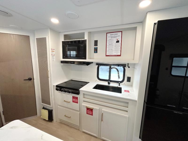The customer-focused, quality-built Transcend Xplor travel trailers by Grand Design are your ticket to fun and adventure. You will appreciate the power tongue jack when it comes time to set up, as well as the all-in-one utility center and the detachable power cord with an LED light. These models include many outlets throughout, USB ports to charge your gadgets, and a JBL exterior speaker to listen to your favorite tunes. The interior of the Transcend Xplor will have you feeling right at home with upgraded residential furniture, residential countertops, residential cabinet doors, and the list goes on!