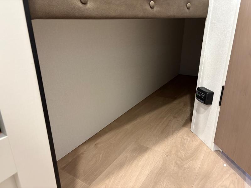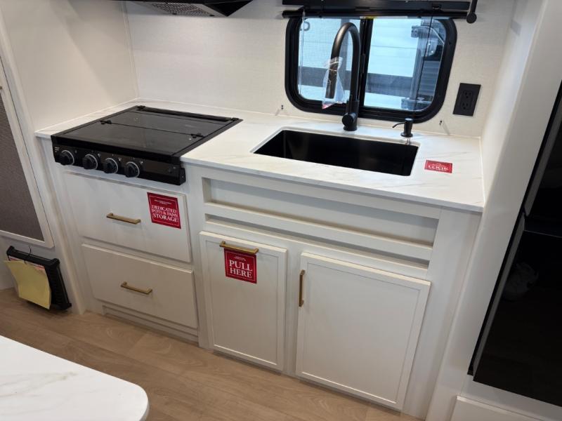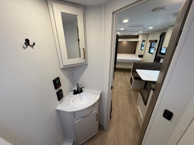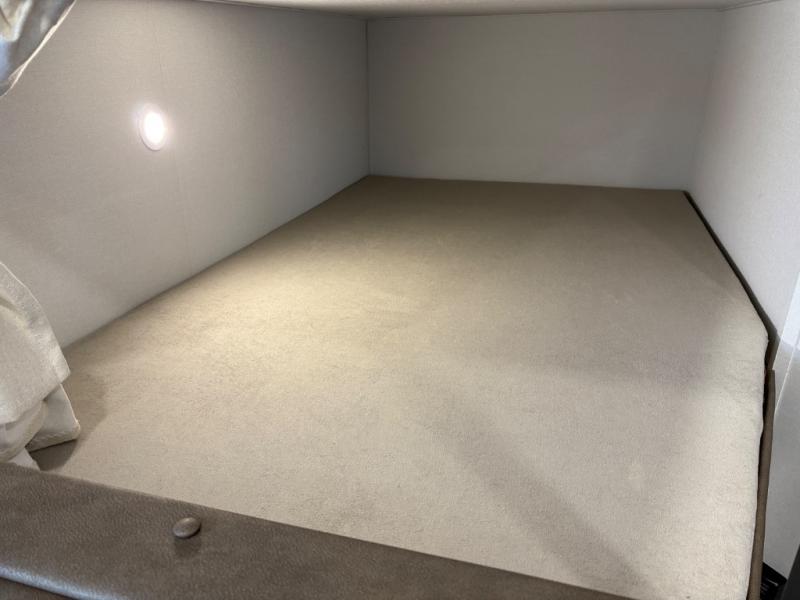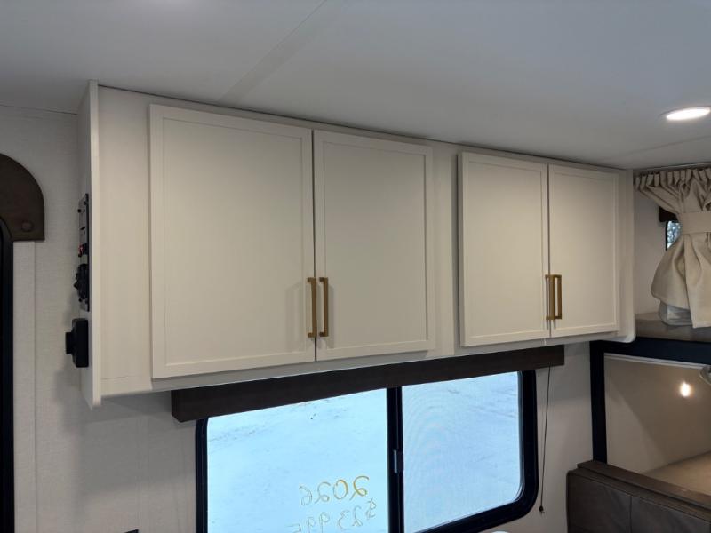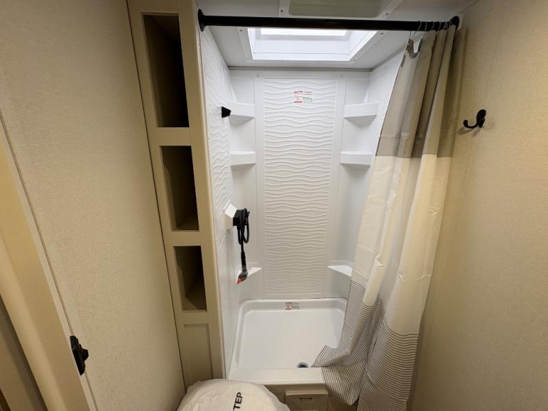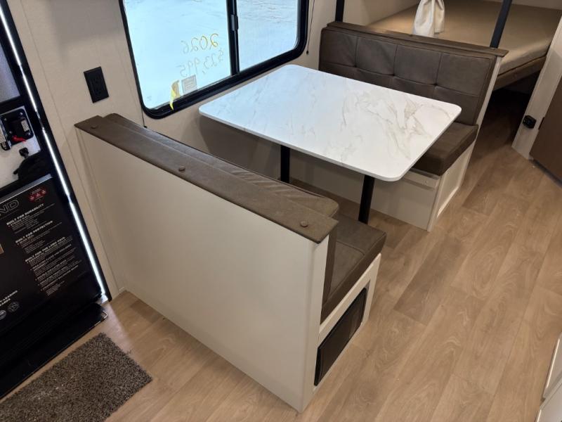 Camping trips are made complete in this travel trailer that can sleep seven each night! The little ones or your guest will love sleeping on the double-size bunks, while you take the queen bed in the front semi-private bedroom with a privacy curtain. A three-burner range and microwave oven will let you make meals each day, and a booth dinette provides a place to dine together. There are also convenient features found here, such as a pull-out pet dish and pull-out trash can, and there is ample storage space for your belongings. And a full bath will let you stay clean throughout your trip without having to leave your trailer!