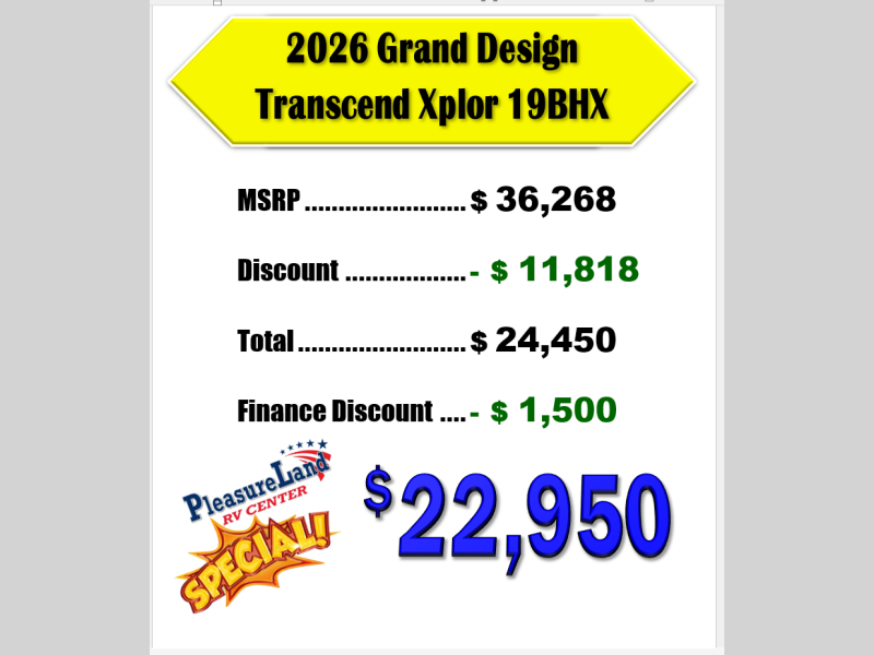 New 2026 Grand Design Transcend Xplor 19BHX Travel Trailer