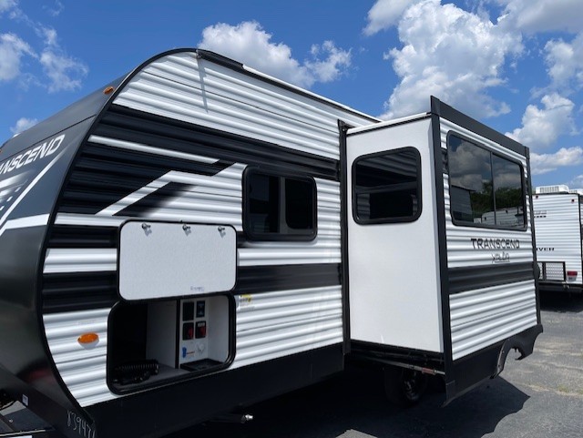 The customer-focused, quality-built Transcend Xplor travel trailers by Grand Design are your ticket to fun and adventure. You will appreciate the power tongue jack when it comes time to set up, as well as the all-in-one utility center and the detachable power cord with an LED light. These models include many outlets throughout, USB ports to charge your gadgets, and a JBL exterior speaker to listen to your favorite tunes. The interior of the Transcend Xplor will have you feeling right at home with upgraded residential furniture, residential countertops, residential cabinet doors, and the list goes on!