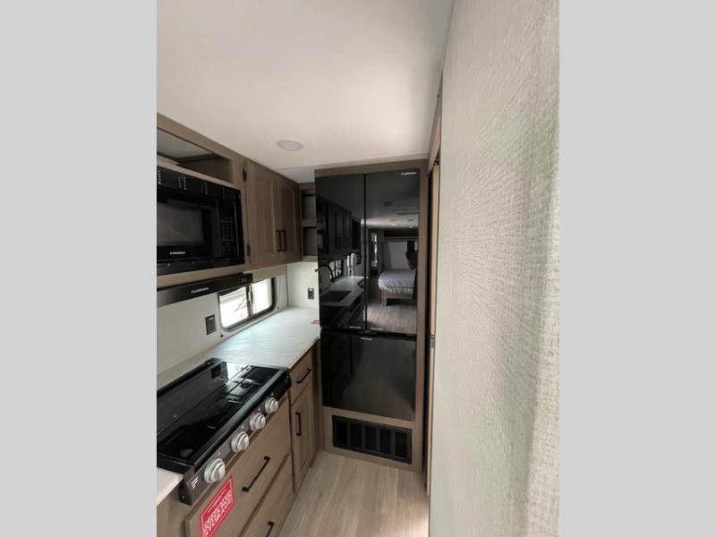 The only thing you need to worry about when you go camping is where to park this Transcend Xplor travel trailer! You'll have everything you need each day to prepare meals, including a three-burner cooktop, a microwave oven, and plenty of counter space. The front queen bed includes overhead cabinets for your books, plus underbed storage for shoes! Choose the optional theater seats in place of the dinette, and you won't even know you're away from home!