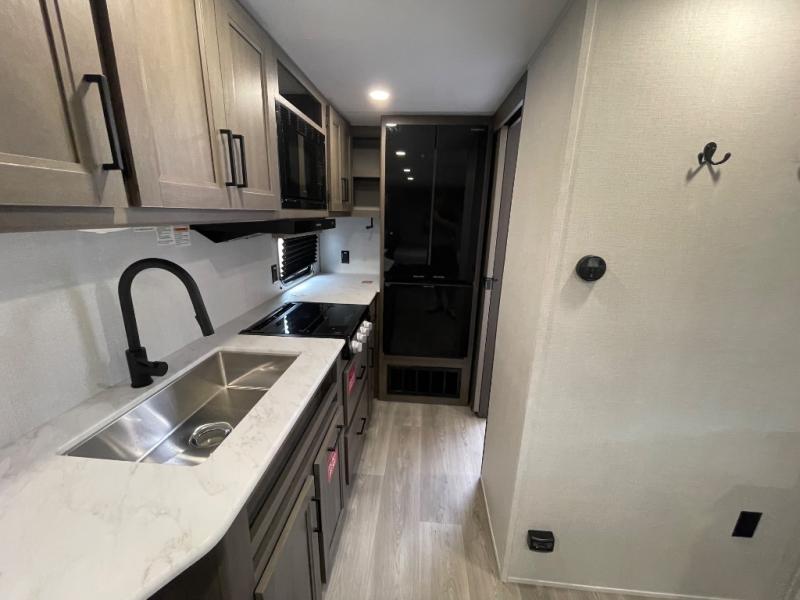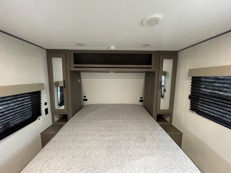 The only thing you need to worry about when you go camping is where to park this Transcend Xplor travel trailer! You'll have everything you need each day to prepare meals, including a three-burner cooktop, a microwave oven, and plenty of counter space. The front queen bed includes overhead cabinets for your books, plus underbed storage for shoes! Choose the optional theater seats in place of the dinette, and you won't even know you're away from home!