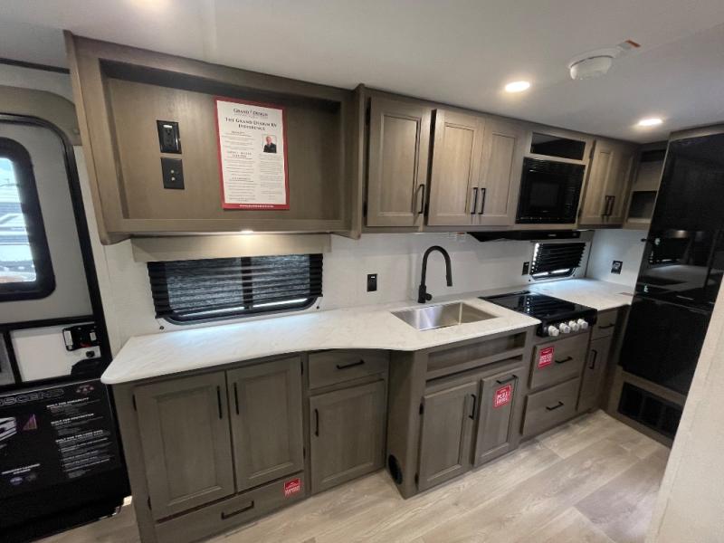 The customer-focused, quality-built Transcend Xplor travel trailers by Grand Design are your ticket to fun and adventure. You will appreciate the power tongue jack when it comes time to set up, as well as the all-in-one utility center and the detachable power cord with an LED light. These models include many outlets throughout, USB ports to charge your gadgets, and a JBL exterior speaker to listen to your favorite tunes. The interior of the Transcend Xplor will have you feeling right at home with upgraded residential furniture, residential countertops, residential cabinet doors, and the list goes on!