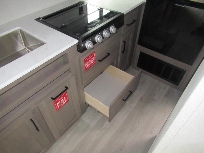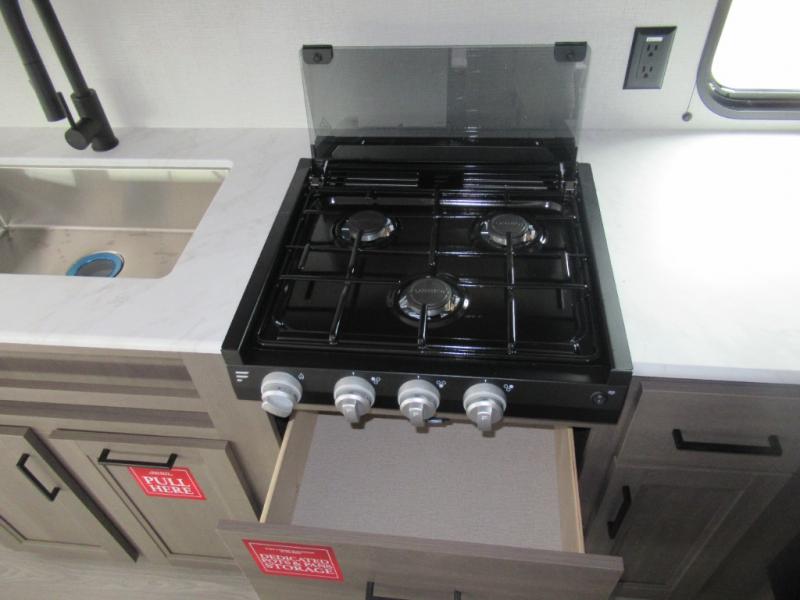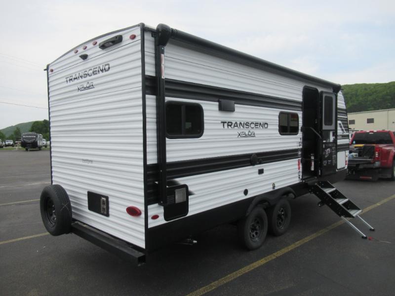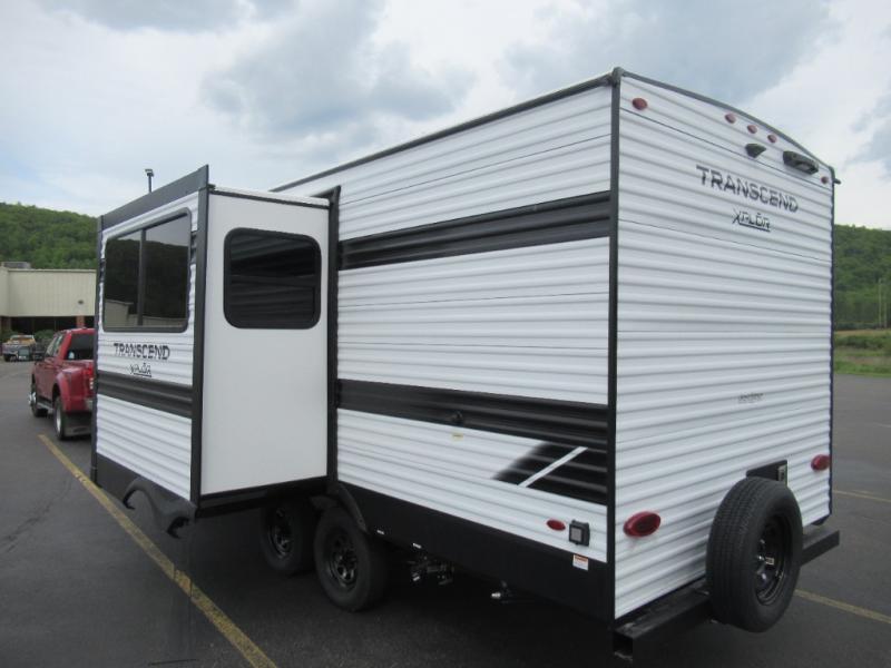 The only thing you need to worry about when you go camping is where to park this Transcend Xplor travel trailer! You'll have everything you need each day to prepare meals, including a three-burner cooktop, a microwave oven, and plenty of counter space. The front queen bed includes overhead cabinets for your books, plus underbed storage for shoes! Choose the optional theater seats in place of the dinette, and you won't even know you're away from home!
