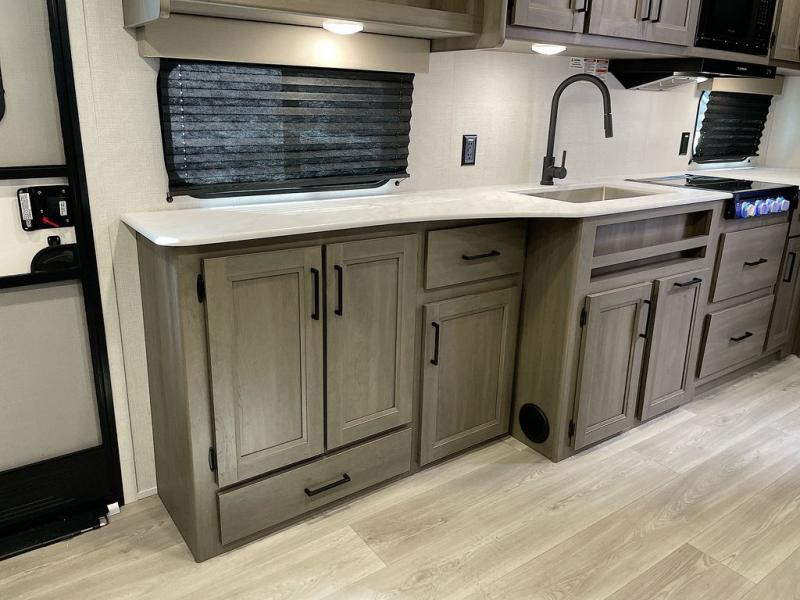 The customer-focused, quality-built Transcend Xplor travel trailers by Grand Design are your ticket to fun and adventure. You will appreciate the power tongue jack when it comes time to set up, as well as the all-in-one utility center and the detachable power cord with an LED light. These models include many outlets throughout, USB ports to charge your gadgets, and a JBL exterior speaker to listen to your favorite tunes. The interior of the Transcend Xplor will have you feeling right at home with upgraded residential furniture, residential countertops, residential cabinet doors, and the list goes on!