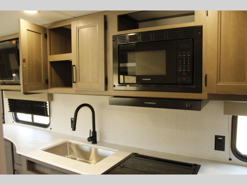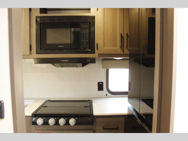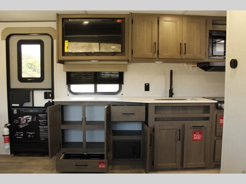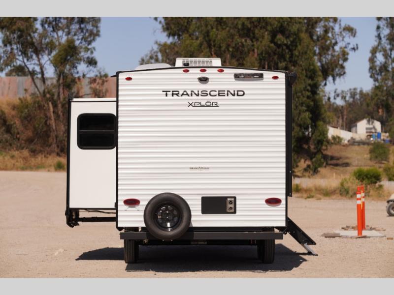 The only thing you need to worry about when you go camping is where to park this Transcend Xplor travel trailer! You'll have everything you need each day to prepare meals, including a three-burner cooktop, a microwave oven, and plenty of counter space. The front queen bed includes overhead cabinets for your books, plus underbed storage for shoes! Choose the optional theater seats in place of the dinette, and you won't even know you're away from home!