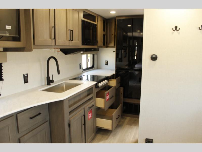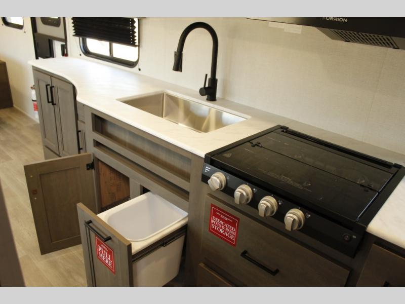 The customer-focused, quality-built Transcend Xplor travel trailers by Grand Design are your ticket to fun and adventure. You will appreciate the power tongue jack when it comes time to set up, as well as the all-in-one utility center and the detachable power cord with an LED light. These models include many outlets throughout, USB ports to charge your gadgets, and a JBL exterior speaker to listen to your favorite tunes. The interior of the Transcend Xplor will have you feeling right at home with upgraded residential furniture, residential countertops, residential cabinet doors, and the list goes on!