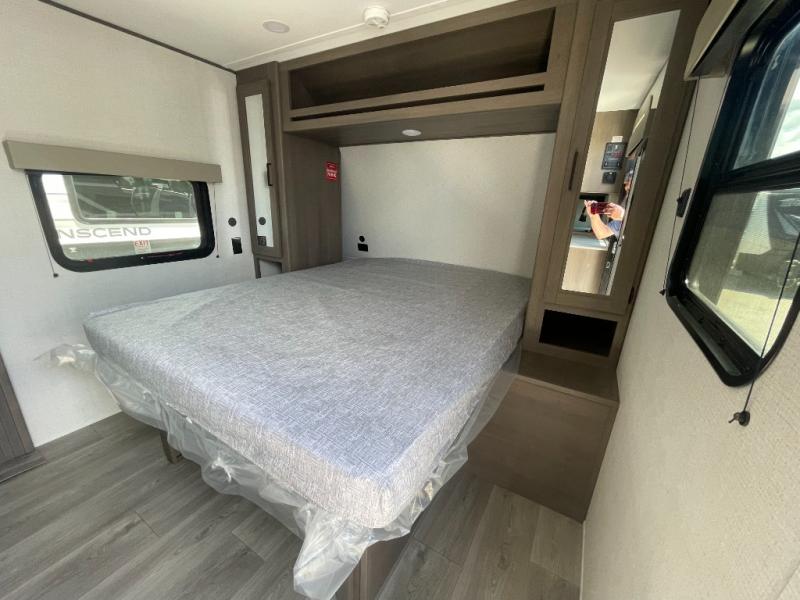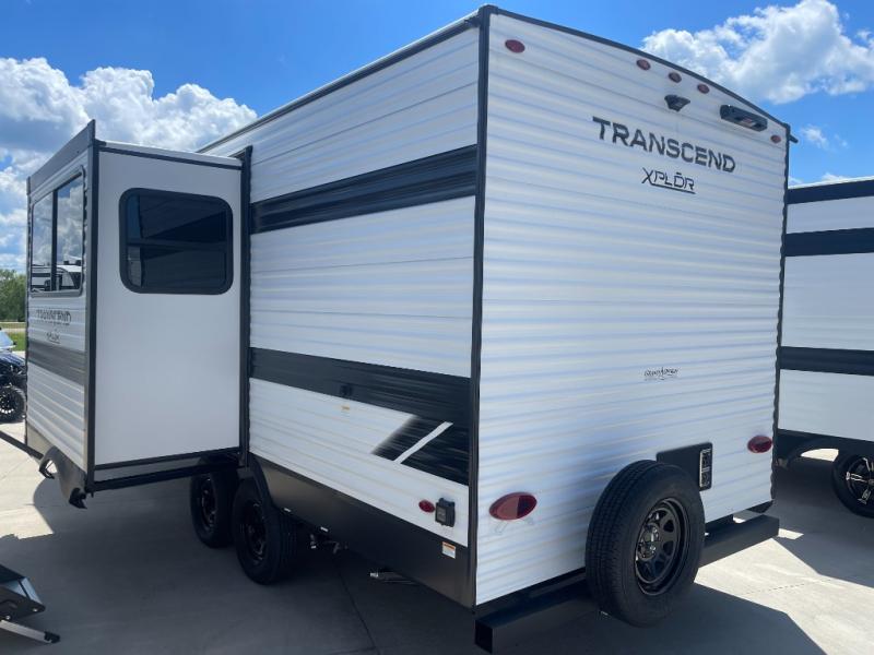 The only thing you need to worry about when you go camping is where to park this Transcend Xplor travel trailer! You'll have everything you need each day to prepare meals, including a three-burner cooktop, a microwave oven, and plenty of counter space. The front queen bed includes overhead cabinets for your books, plus underbed storage for shoes! Choose the optional theater seats in place of the dinette, and you won't even know you're away from home!