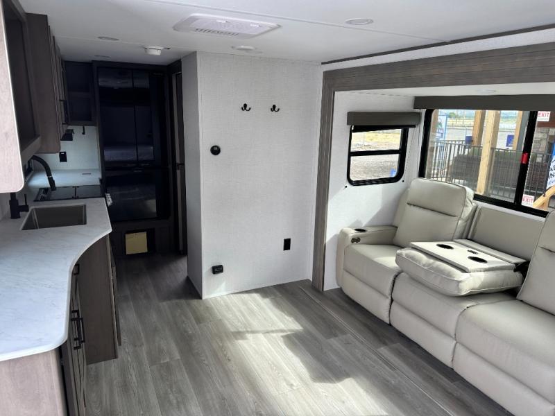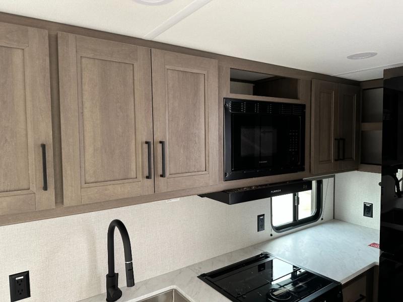 The only thing you need to worry about when you go camping is where to park this Transcend Xplor travel trailer! You'll have everything you need each day to prepare meals, including a three-burner cooktop, a microwave oven, and plenty of counter space. The front queen bed includes overhead cabinets for your books, plus underbed storage for shoes! Choose the optional theater seats in place of the dinette, and you won't even know you're away from home!