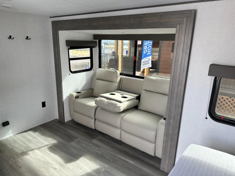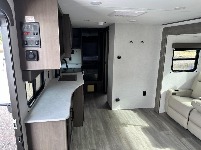 The customer-focused, quality-built Transcend Xplor travel trailers by Grand Design are your ticket to fun and adventure. You will appreciate the power tongue jack when it comes time to set up, as well as the all-in-one utility center and the detachable power cord with an LED light. These models include many outlets throughout, USB ports to charge your gadgets, and a JBL exterior speaker to listen to your favorite tunes. The interior of the Transcend Xplor will have you feeling right at home with upgraded residential furniture, residential countertops, residential cabinet doors, and the list goes on!