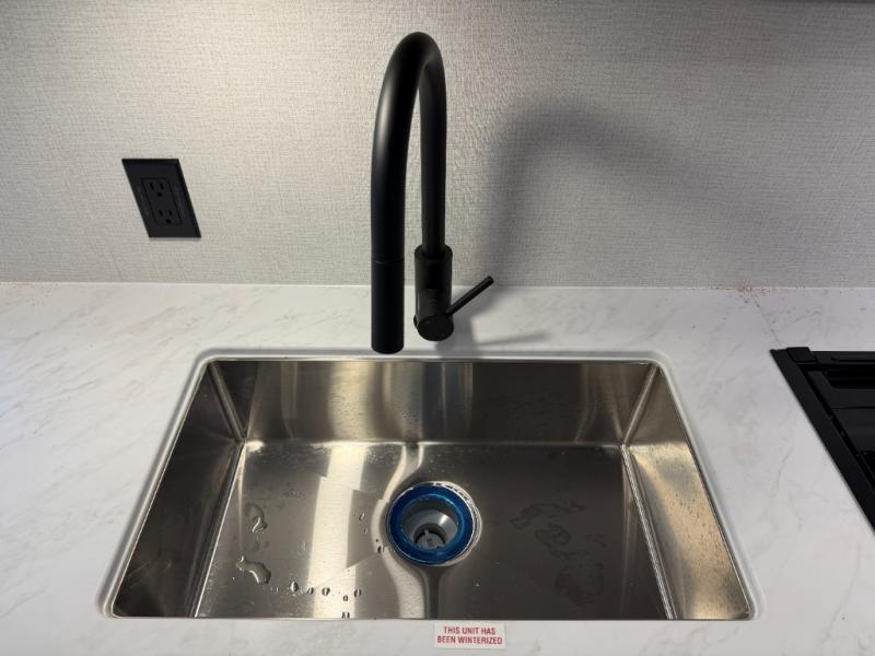 - Three-burner cooktop, microwave oven, and large sink for easy meal prep