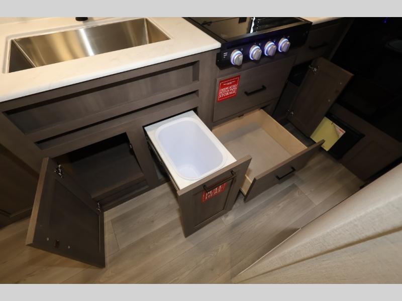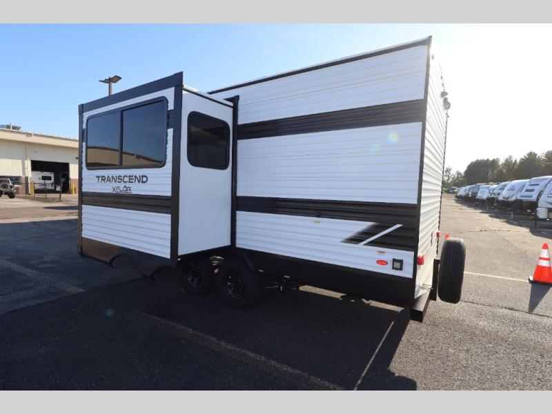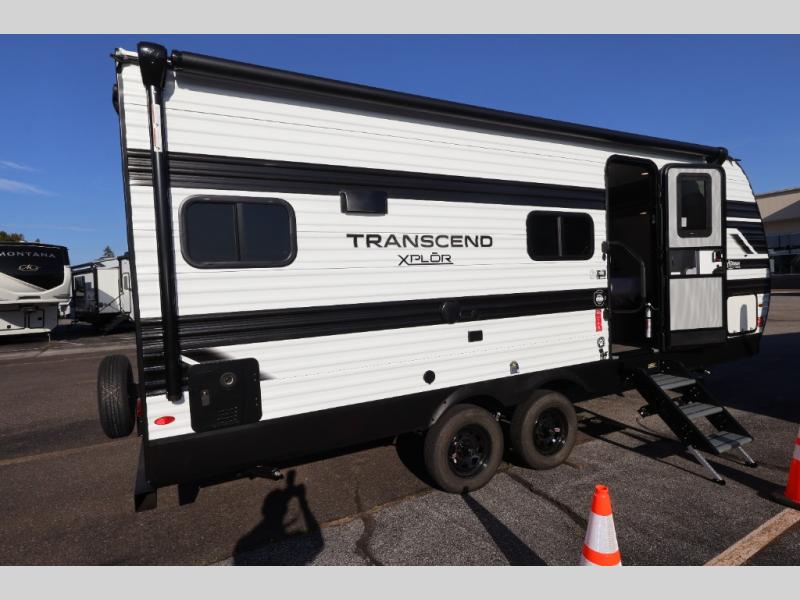 The only thing you need to worry about when you go camping is where to park this Transcend Xplor travel trailer! You'll have everything you need each day to prepare meals, including a three-burner cooktop, a microwave oven, and plenty of counter space. The front queen bed includes overhead cabinets for your books, plus underbed storage for shoes! Choose the optional theater seats in place of the dinette, and you won't even know you're away from home!