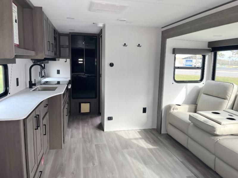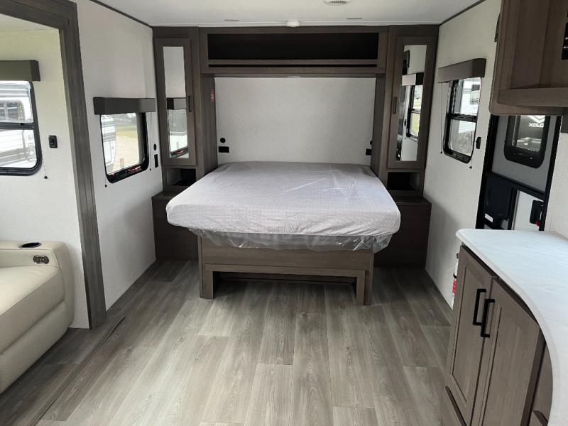The customer-focused, quality-built Transcend Xplor travel trailers by Grand Design are your ticket to fun and adventure. You will appreciate the power tongue jack when it comes time to set up, as well as the all-in-one utility center and the detachable power cord with an LED light. These models include many outlets throughout, USB ports to charge your gadgets, and a JBL exterior speaker to listen to your favorite tunes. The interior of the Transcend Xplor will have you feeling right at home with upgraded residential furniture, residential countertops, residential cabinet doors, and the list goes on!
