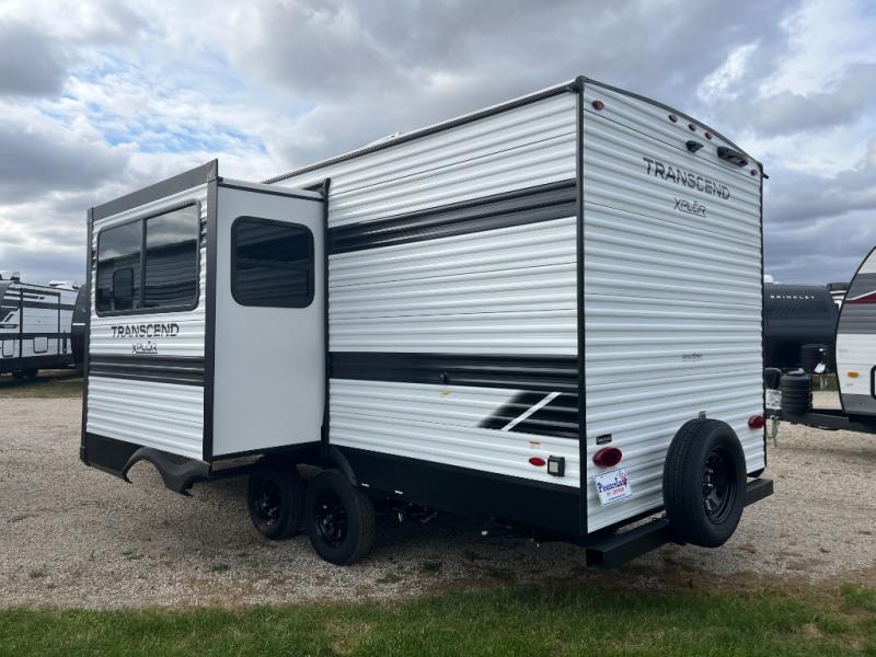 The only thing you need to worry about when you go camping is where to park this Transcend Xplor travel trailer! You'll have everything you need each day to prepare meals, including a three-burner cooktop, a microwave oven, and plenty of counter space. The front queen bed includes overhead cabinets for your books, plus underbed storage for shoes! Choose the optional theater seats in place of the dinette, and you won't even know you're away from home!
