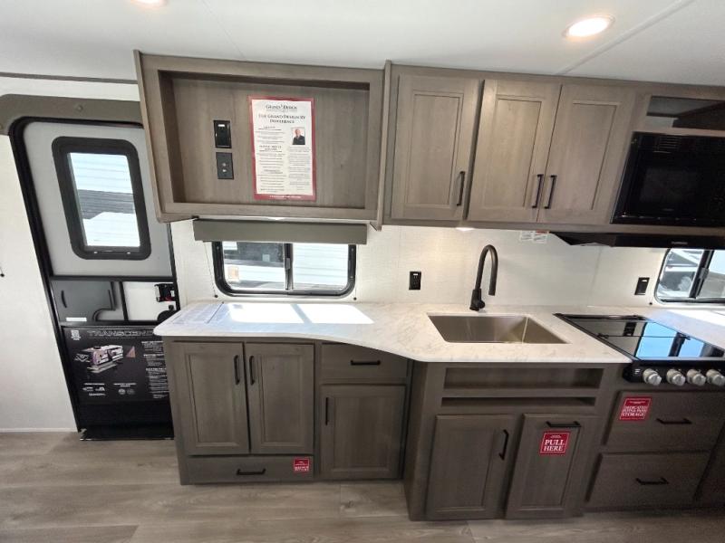 The customer-focused, quality-built Transcend Xplor travel trailers by Grand Design are your ticket to fun and adventure. You will appreciate the power tongue jack when it comes time to set up, as well as the all-in-one utility center and the detachable power cord with an LED light. These models include many outlets throughout, USB ports to charge your gadgets, and a JBL exterior speaker to listen to your favorite tunes. The interior of the Transcend Xplor will have you feeling right at home with upgraded residential furniture, residential countertops, residential cabinet doors, and the list goes on!