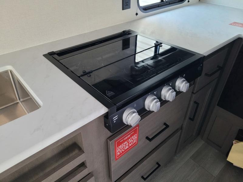 The only thing you need to worry about when you go camping is where to park this Transcend Xplor travel trailer! You'll have everything you need each day to prepare meals, including a three-burner cooktop, a microwave oven, and plenty of counter space. The front queen bed includes overhead cabinets for your books, plus underbed storage for shoes! Choose the optional theater seats in place of the dinette, and you won't even know you're away from home!