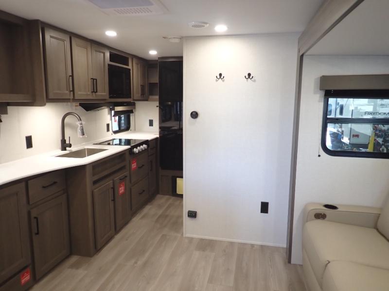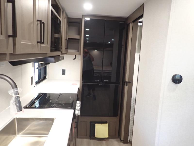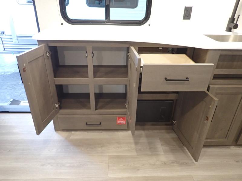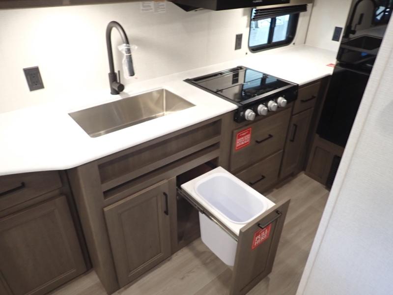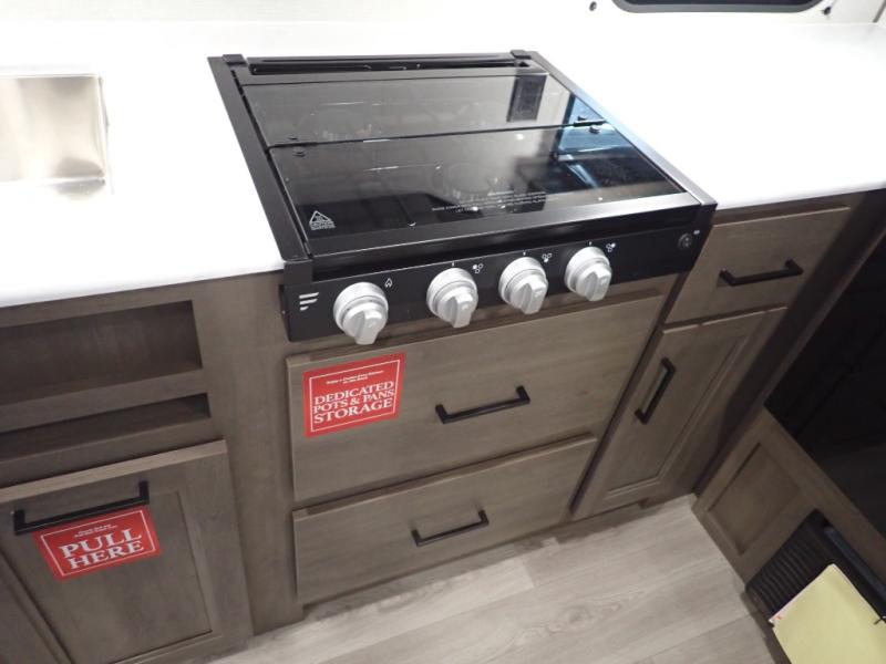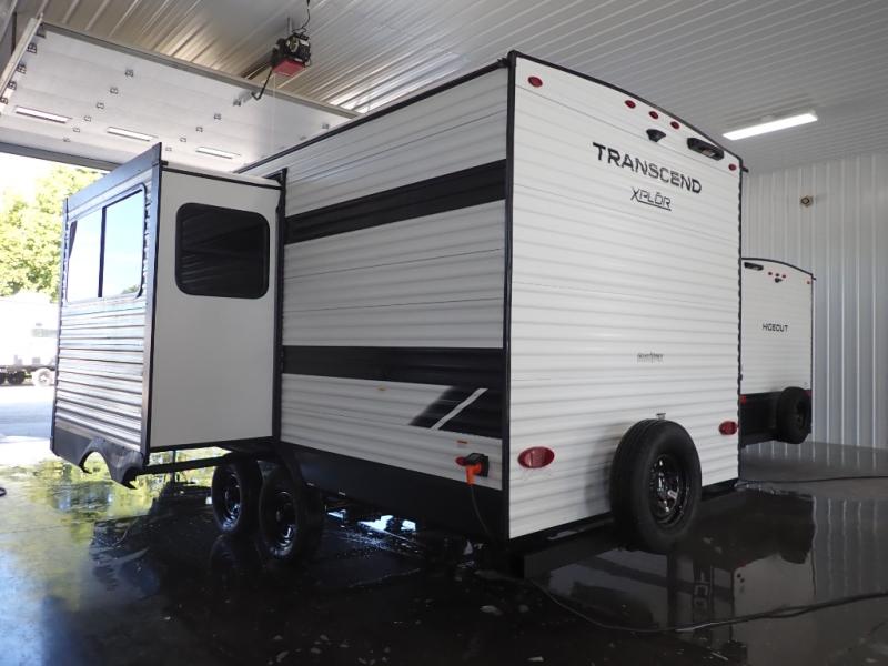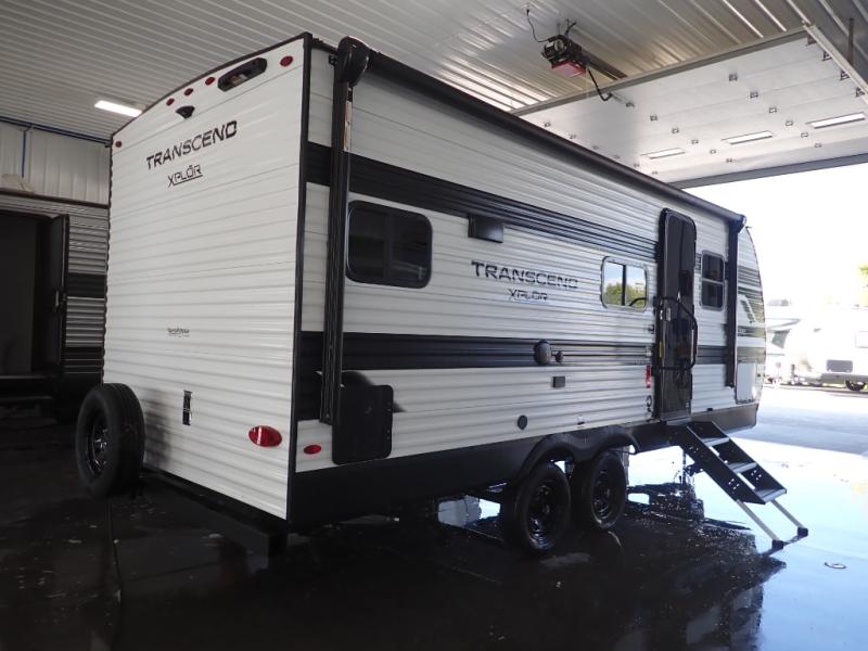 The only thing you need to worry about when you go camping is where to park this Transcend Xplor travel trailer! You'll have everything you need each day to prepare meals, including a three-burner cooktop, a microwave oven, and plenty of counter space. The front queen bed includes overhead cabinets for your books, plus underbed storage for shoes! Choose the optional theater seats in place of the dinette, and you won't even know you're away from home!