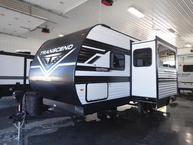 The customer-focused, quality-built Transcend Xplor travel trailers by Grand Design are your ticket to fun and adventure. You will appreciate the power tongue jack when it comes time to set up, as well as the all-in-one utility center and the detachable power cord with an LED light. These models include many outlets throughout, USB ports to charge your gadgets, and a JBL exterior speaker to listen to your favorite tunes. The interior of the Transcend Xplor will have you feeling right at home with upgraded residential furniture, residential countertops, residential cabinet doors, and the list goes on!