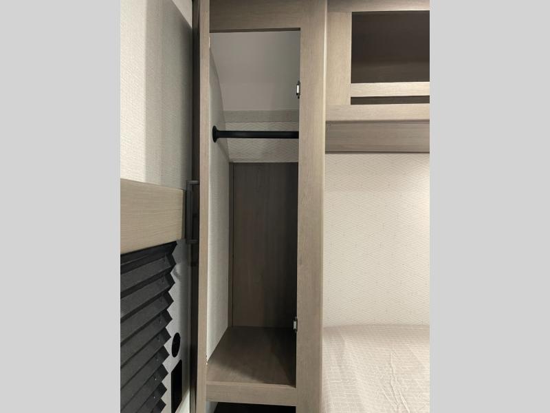 The only thing you need to worry about when you go camping is where to park this Transcend Xplor travel trailer! You'll have everything you need each day to prepare meals, including a three-burner cooktop, a microwave oven, and plenty of counter space. The front queen bed includes overhead cabinets for your books, plus underbed storage for shoes! Choose the optional theater seats in place of the dinette, and you won't even know you're away from home!
