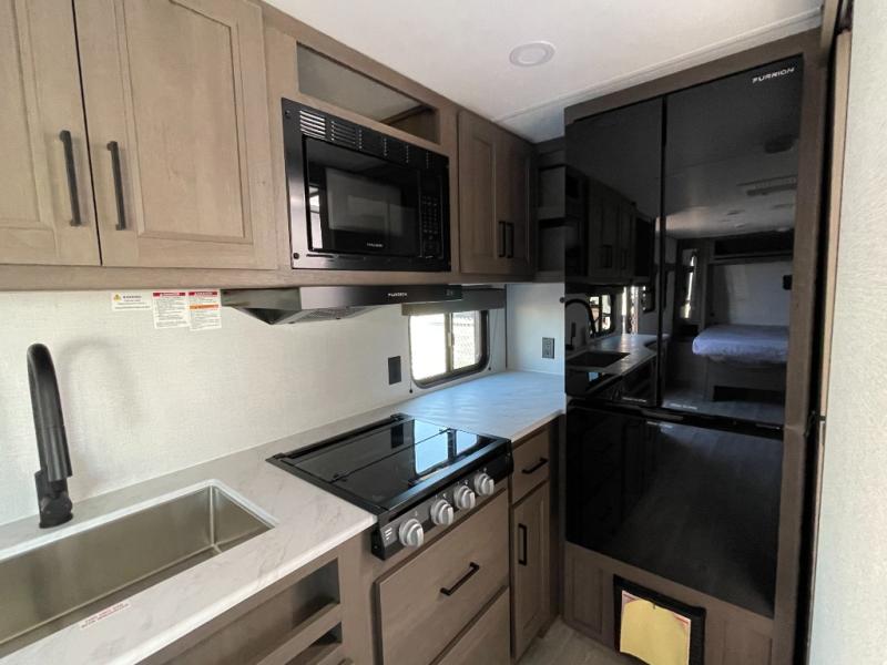 The only thing you need to worry about when you go camping is where to park this Transcend Xplor travel trailer! You'll have everything you need each day to prepare meals, including a three-burner cooktop, a microwave oven, and plenty of counter space. The front queen bed includes overhead cabinets for your books, plus underbed storage for shoes! Choose the optional theater seats in place of the dinette, and you won't even know you're away from home!