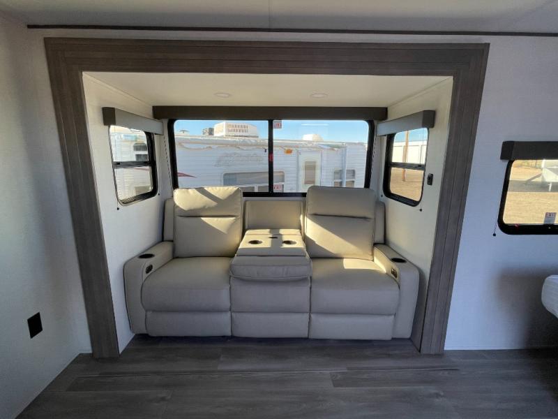 The customer-focused, quality-built Transcend Xplor travel trailers by Grand Design are your ticket to fun and adventure. You will appreciate the power tongue jack when it comes time to set up, as well as the all-in-one utility center and the detachable power cord with an LED light. These models include many outlets throughout, USB ports to charge your gadgets, and a JBL exterior speaker to listen to your favorite tunes. The interior of the Transcend Xplor will have you feeling right at home with upgraded residential furniture, residential countertops, residential cabinet doors, and the list goes on!