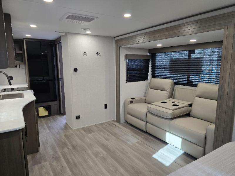 The customer-focused, quality-built Transcend Xplor travel trailers by Grand Design are your ticket to fun and adventure. You will appreciate the power tongue jack when it comes time to set up, as well as the all-in-one utility center and the detachable power cord with an LED light. These models include many outlets throughout, USB ports to charge your gadgets, and a JBL exterior speaker to listen to your favorite tunes. The interior of the Transcend Xplor will have you feeling right at home with upgraded residential furniture, residential countertops, residential cabinet doors, and the list goes on!