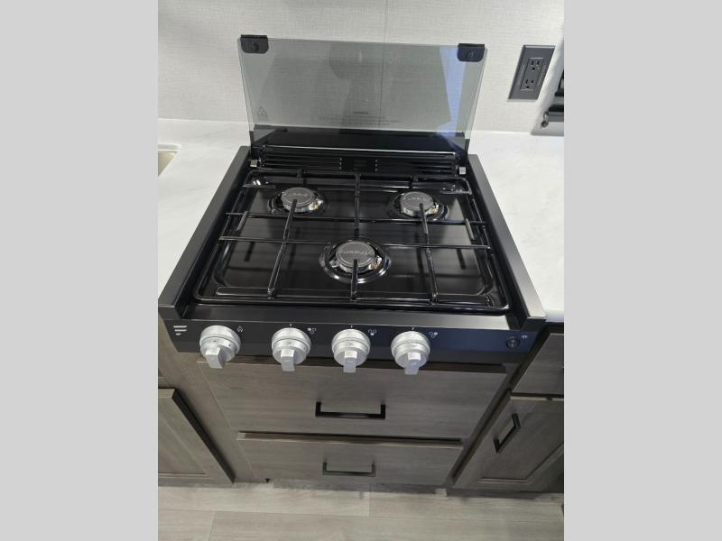 The only thing you need to worry about when you go camping is where to park this Transcend Xplor travel trailer! You'll have everything you need each day to prepare meals, including a three-burner cooktop, a microwave oven, and plenty of counter space. The front queen bed includes overhead cabinets for your books, plus underbed storage for shoes! Choose the optional theater seats in place of the dinette, and you won't even know you're away from home!