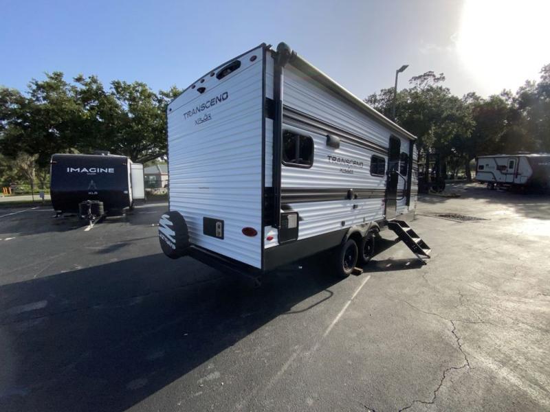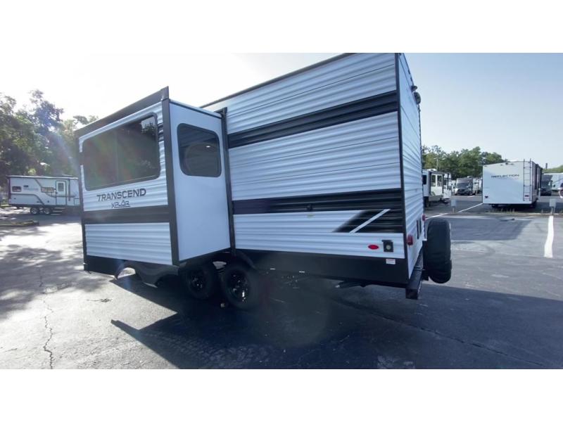 The only thing you need to worry about when you go camping is where to park this Transcend Xplor travel trailer! You'll have everything you need each day to prepare meals, including a three-burner cooktop, a microwave oven, and plenty of counter space. The front queen bed includes overhead cabinets for your books, plus underbed storage for shoes! Choose the optional theater seats in place of the dinette, and you won't even know you're away from home!