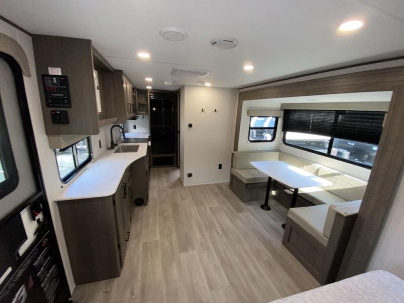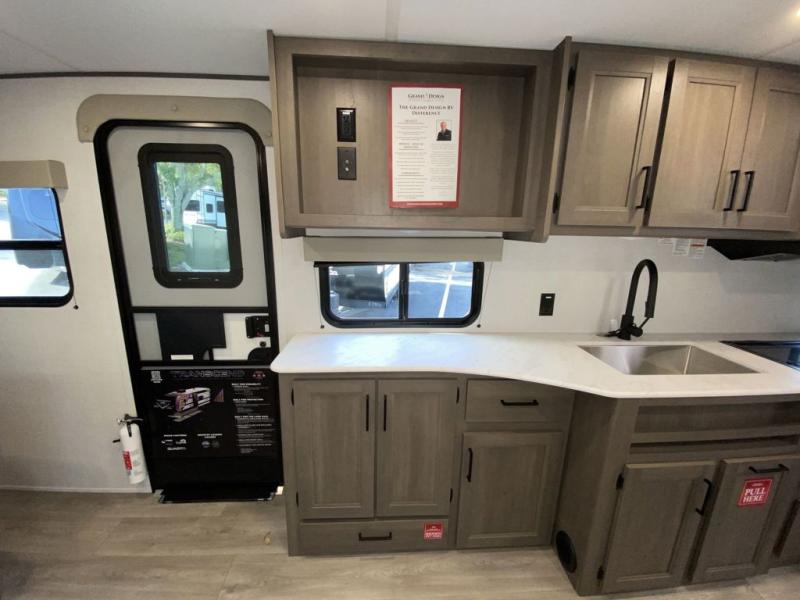 The customer-focused, quality-built Transcend Xplor travel trailers by Grand Design are your ticket to fun and adventure. You will appreciate the power tongue jack when it comes time to set up, as well as the all-in-one utility center and the detachable power cord with an LED light. These models include many outlets throughout, USB ports to charge your gadgets, and a JBL exterior speaker to listen to your favorite tunes. The interior of the Transcend Xplor will have you feeling right at home with upgraded residential furniture, residential countertops, residential cabinet doors, and the list goes on!