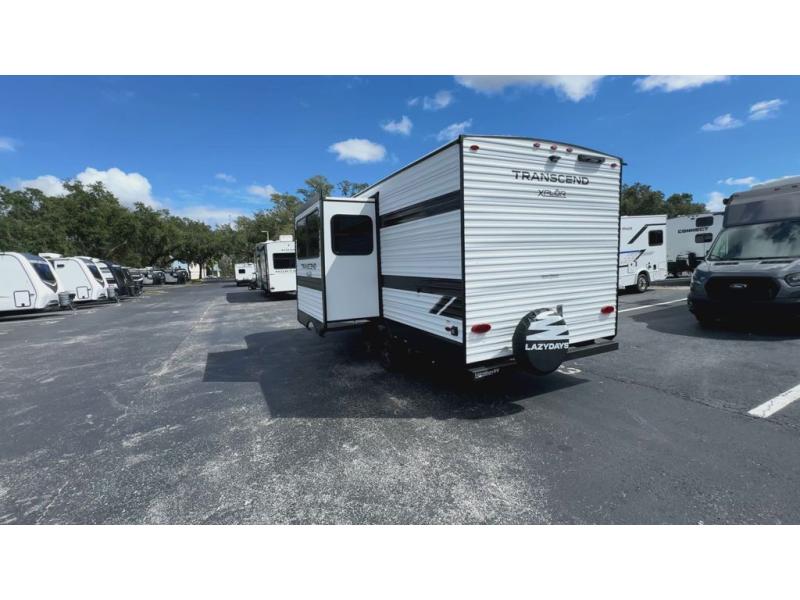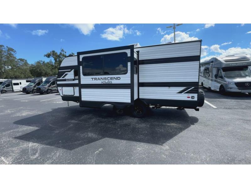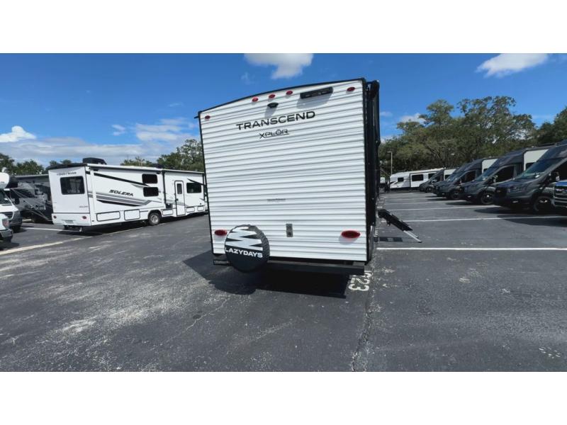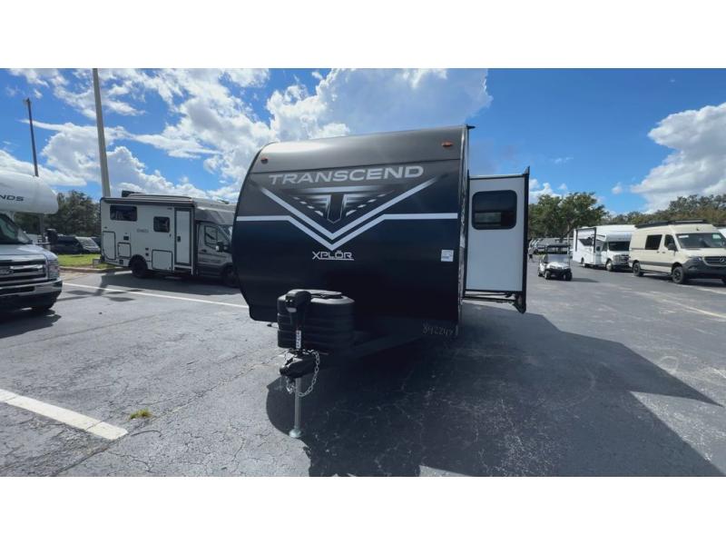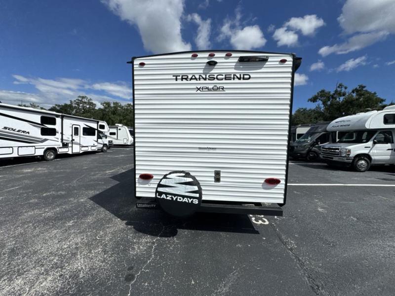 The only thing you need to worry about when you go camping is where to park this Transcend Xplor travel trailer! You'll have everything you need each day to prepare meals, including a three-burner cooktop, a microwave oven, and plenty of counter space. The front queen bed includes overhead cabinets for your books, plus underbed storage for shoes! Choose the optional theater seats in place of the dinette, and you won't even know you're away from home!