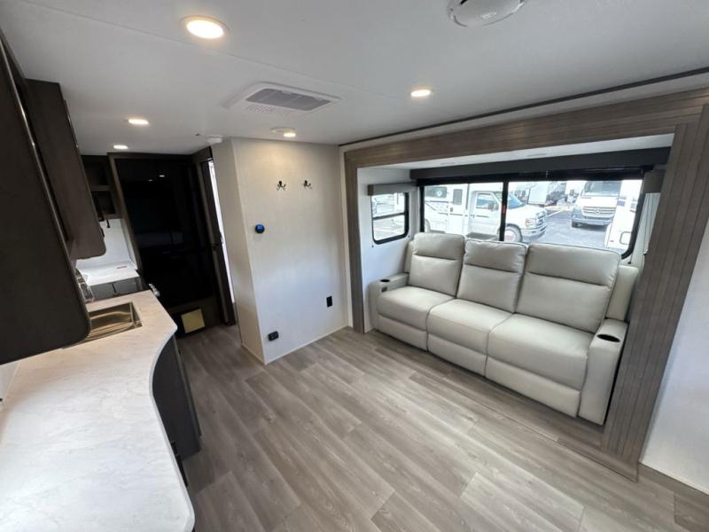 The customer-focused, quality-built Transcend Xplor travel trailers by Grand Design are your ticket to fun and adventure. You will appreciate the power tongue jack when it comes time to set up, as well as the all-in-one utility center and the detachable power cord with an LED light. These models include many outlets throughout, USB ports to charge your gadgets, and a JBL exterior speaker to listen to your favorite tunes. The interior of the Transcend Xplor will have you feeling right at home with upgraded residential furniture, residential countertops, residential cabinet doors, and the list goes on!