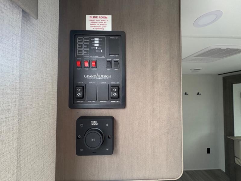 Outside, the 17' power awning with LED lighting extends your living space and sets the mood for evenings around the campsite.