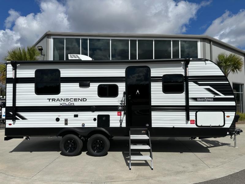 The customer-focused, quality-built Transcend Xplor travel trailers by Grand Design are your ticket to fun and adventure. You will appreciate the power tongue jack when it comes time to set up, as well as the all-in-one utility center and the detachable power cord with an LED light. These models include many outlets throughout, USB ports to charge your gadgets, and a JBL exterior speaker to listen to your favorite tunes. The interior of the Transcend Xplor will have you feeling right at home with upgraded residential furniture, residential countertops, residential cabinet doors, and the list goes on!