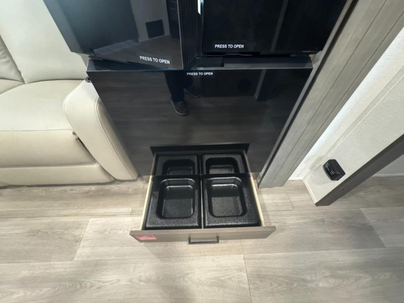 Generous pass-through storage, power tongue jack, and solid aluminum entry steps