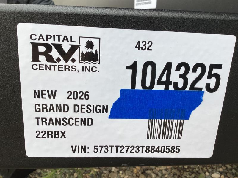 New 2026 Grand Design Transcend Xplor 22RBX Travel Trailer
