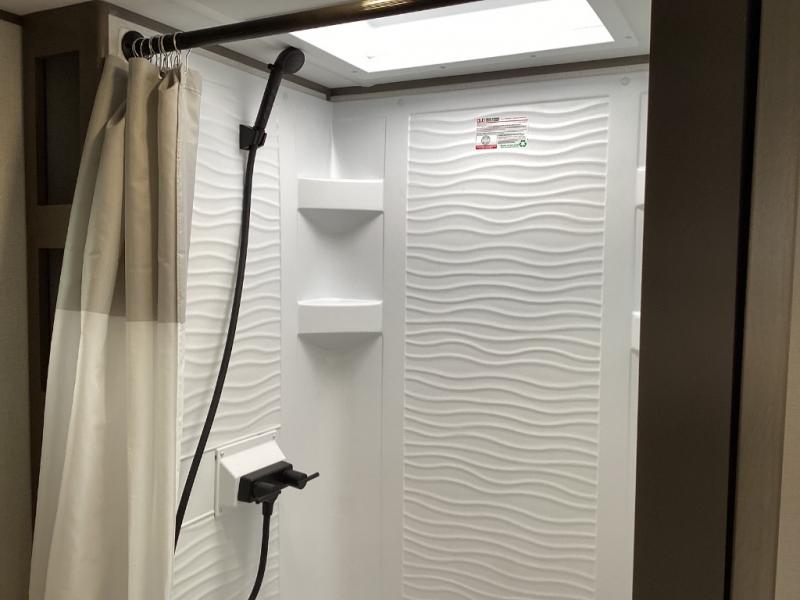 Aluminum-framed construction, walk-on roof, walkable pass-through storage, water-resistant flooring, and solar preparation mean this Xplor stands up to the elements. -