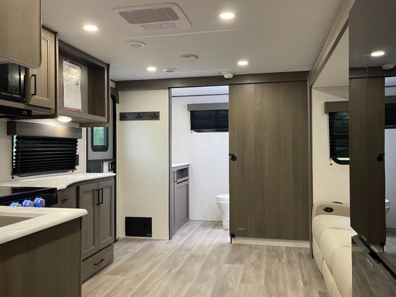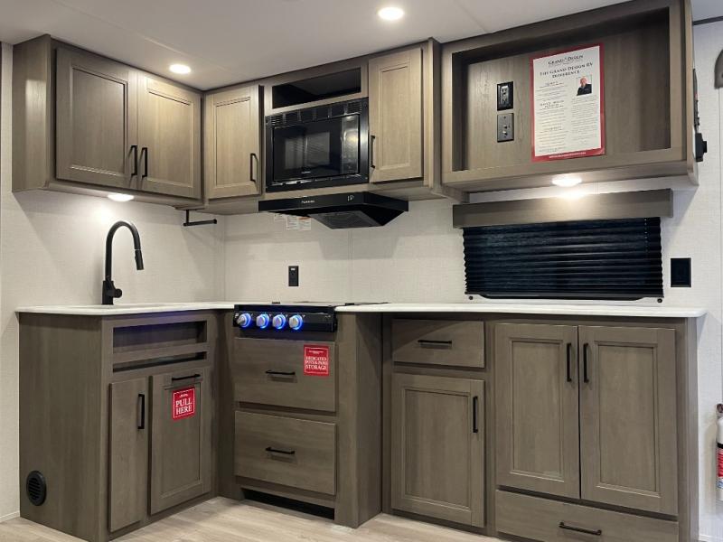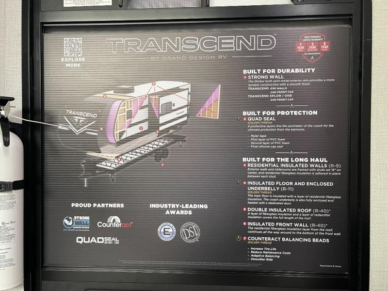 The customer-focused, quality-built Transcend Xplor travel trailers by Grand Design are your ticket to fun and adventure. You will appreciate the power tongue jack when it comes time to set up, as well as the all-in-one utility center and the detachable power cord with an LED light. These models include many outlets throughout, USB ports to charge your gadgets, and a JBL exterior speaker to listen to your favorite tunes. The interior of the Transcend Xplor will have you feeling right at home with upgraded residential furniture, residential countertops, residential cabinet doors, and the list goes on!