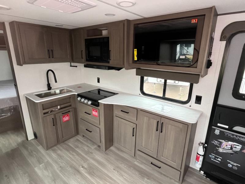 The customer-focused, quality-built Transcend Xplor travel trailers by Grand Design are your ticket to fun and adventure. You will appreciate the power tongue jack when it comes time to set up, as well as the all-in-one utility center and the detachable power cord with an LED light. These models include many outlets throughout, USB ports to charge your gadgets, and a JBL exterior speaker to listen to your favorite tunes. The interior of the Transcend Xplor will have you feeling right at home with upgraded residential furniture, residential countertops, residential cabinet doors, and the list goes on!