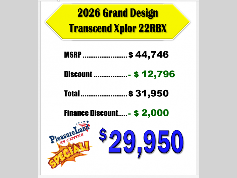 New 2026 Grand Design Transcend Xplor 22RBX Travel Trailer