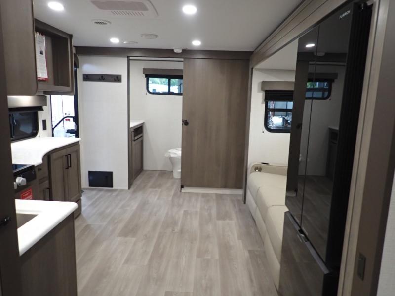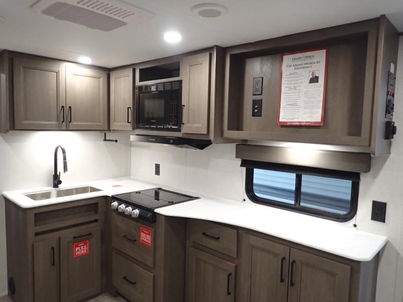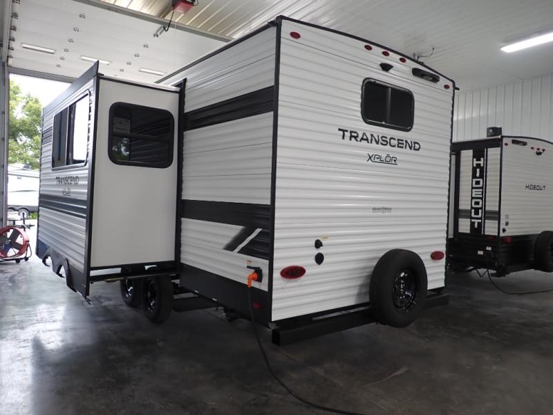 The customer-focused, quality-built Transcend Xplor travel trailers by Grand Design are your ticket to fun and adventure. You will appreciate the power tongue jack when it comes time to set up, as well as the all-in-one utility center and the detachable power cord with an LED light. These models include many outlets throughout, USB ports to charge your gadgets, and a JBL exterior speaker to listen to your favorite tunes. The interior of the Transcend Xplor will have you feeling right at home with upgraded residential furniture, residential countertops, residential cabinet doors, and the list goes on!