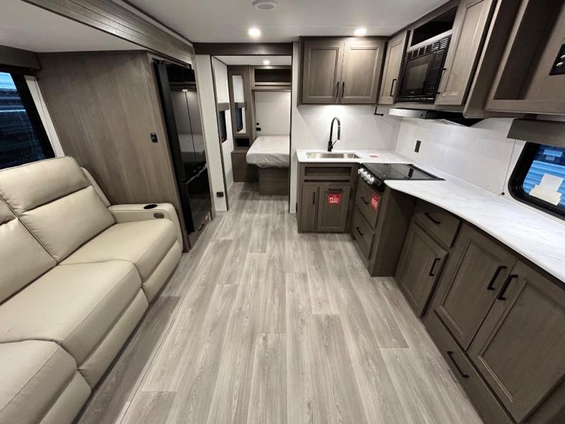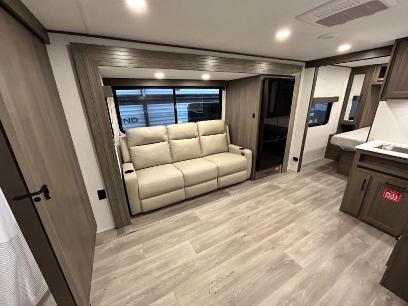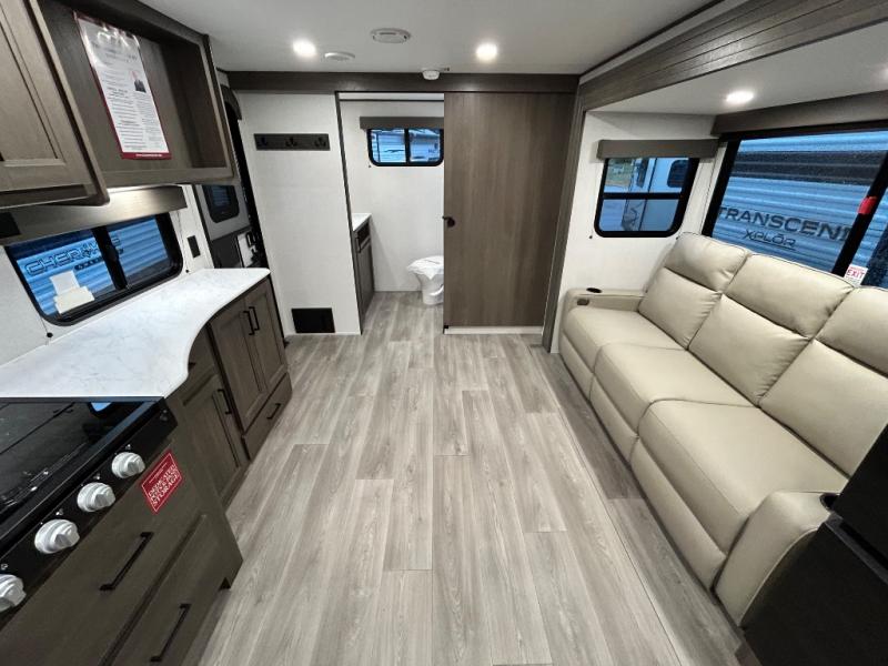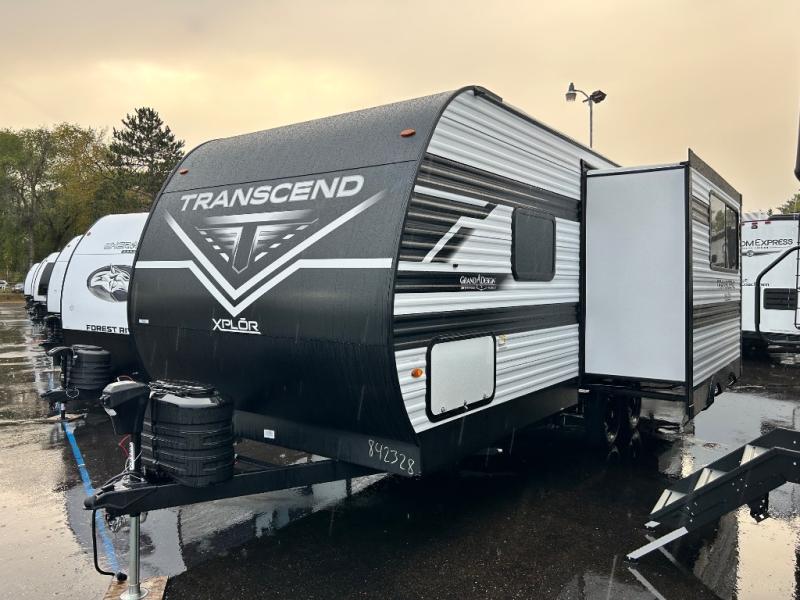 The customer-focused, quality-built Transcend Xplor travel trailers by Grand Design are your ticket to fun and adventure. You will appreciate the power tongue jack when it comes time to set up, as well as the all-in-one utility center and the detachable power cord with an LED light. These models include many outlets throughout, USB ports to charge your gadgets, and a JBL exterior speaker to listen to your favorite tunes. The interior of the Transcend Xplor will have you feeling right at home with upgraded residential furniture, residential countertops, residential cabinet doors, and the list goes on!