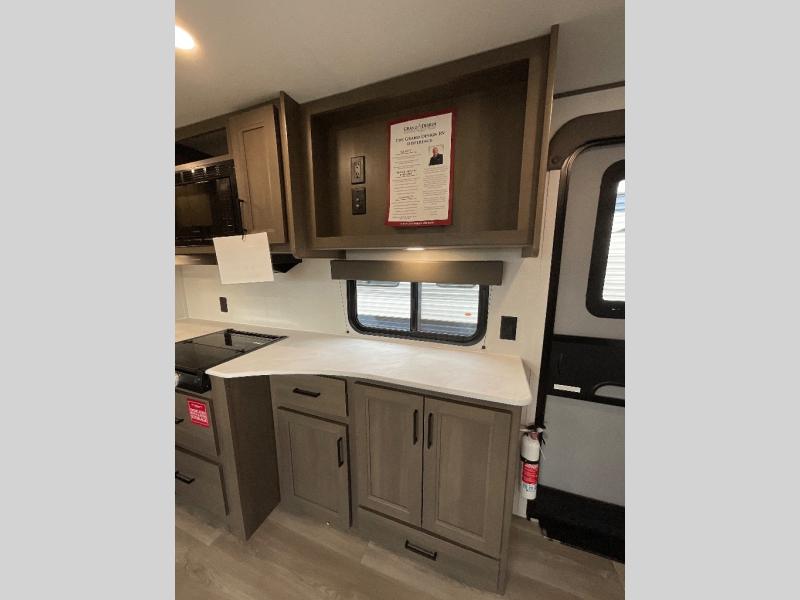 The customer-focused, quality-built Transcend Xplor travel trailers by Grand Design are your ticket to fun and adventure. You will appreciate the power tongue jack when it comes time to set up, as well as the all-in-one utility center and the detachable power cord with an LED light. These models include many outlets throughout, USB ports to charge your gadgets, and a JBL exterior speaker to listen to your favorite tunes. The interior of the Transcend Xplor will have you feeling right at home with upgraded residential furniture, residential countertops, residential cabinet doors, and the list goes on!