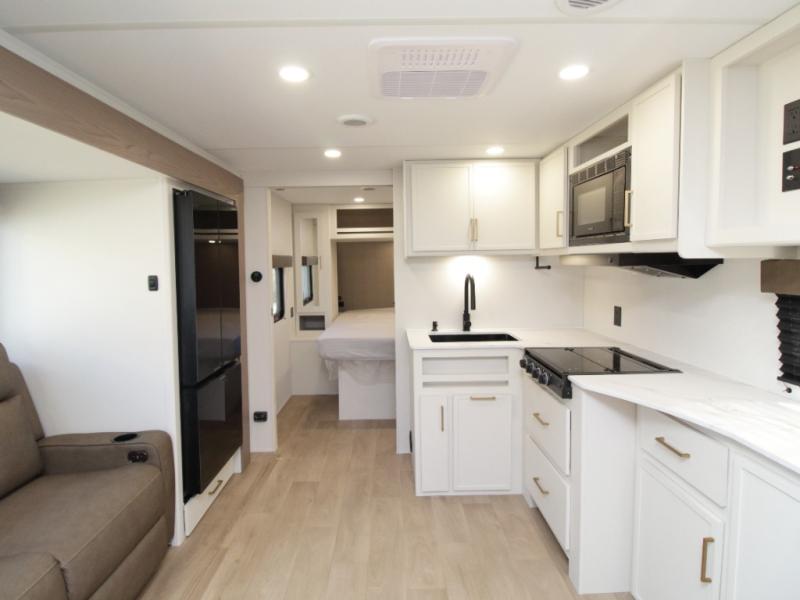 The Transcend Xplor 22RBX offers a layout that makes setup simple and daily life comfortable. Outdoor cooking, shaded relaxation, and an inviting interior come together so you can spend less time managing your RV and more time enjoying the campsite. Whether you’re cooking outside, relaxing inside, or hosting friends, this trailer adapts easily to your plans.