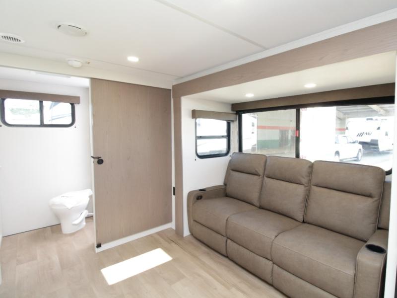 Discover the 2026 Transcend Xplor 22RBX with theater seating, a full rear bathroom, and a front private bedroom with a queen bed!